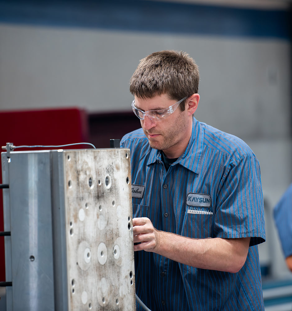 Once the tool is received from the toolmaker and the optimal process has been determined, Kaysun conducts a first run of the part to determine whether the part meets specifications.